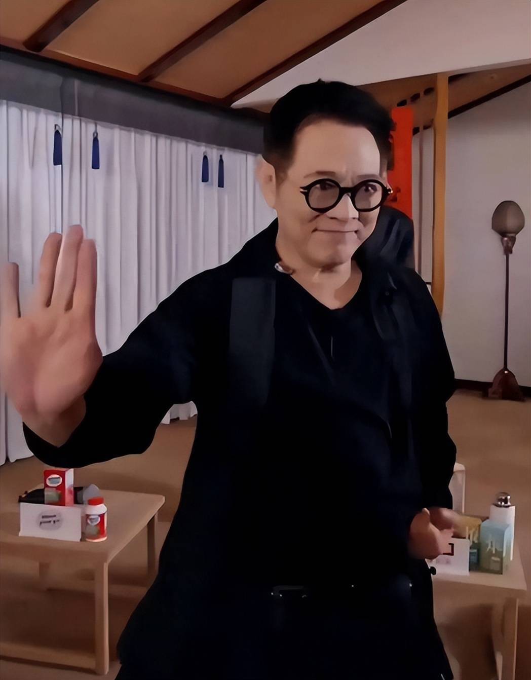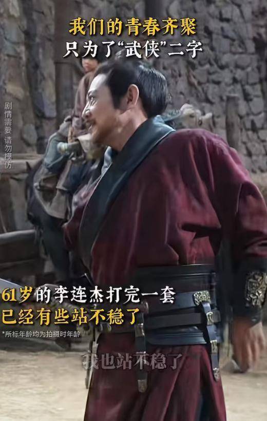不过在完成一套完整的武打动作后,他会笑着调侃自己有些站不稳。