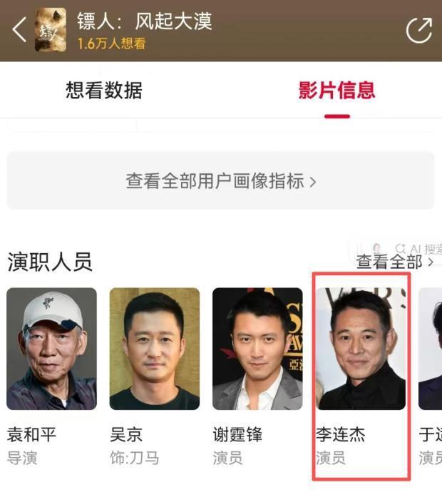 有网友发现,影坛巨星李连杰的参演信息赫然在列。